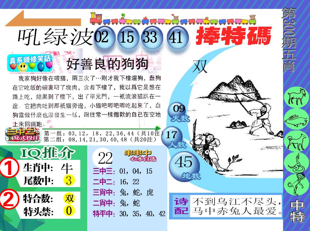 300期正版天机诗 二七定开四三六。送:狗龙鼠羊猴。 推荐:4 2 1头+蓝绿波(开?00) |